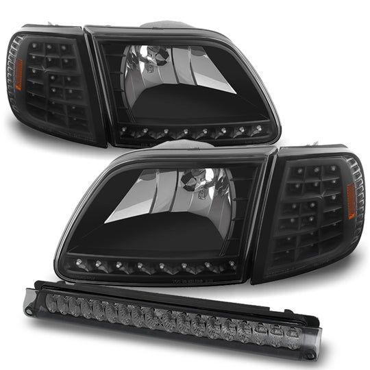 Regular price $145.88This is a listing for a pair of DRL LED Headlights with full LED signal corner light in Black Housing with high quality LED 3rd brake lights and it Fits 97-03 Ford F-150, 04 Ford F-150... -