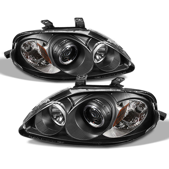 AKKON - For 99-00 Honda Civic Black Bezel Dual Halo Ring Projector Headlights + JDM Altezza Tail light