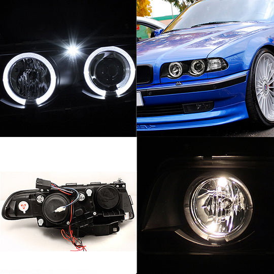 AKKON - For 99-01 BMW E38 7 Series Black Bezel Halogen [NON HID Type] Projector Headlights Front Lamps Replacement Pair