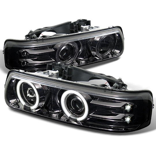 AKKON - For 99-02 Chevy Silverado 00-06 Suburban Tahoe Smoke Smoked Dual Halo Ring Projector Headlights Pair Replacement