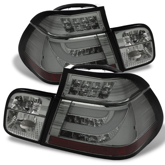 AKKON - For 99-01 BMW E46 3-Series 4 Doors Sedan Red Smoke LED Tail Lights Brake Lamps Pair 4pcs Replacement