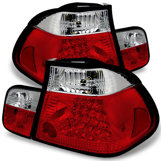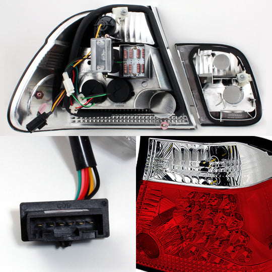 AKKON - For 99-01 BMW E46 3-Series 4 Doors Sedan Red Clear LED Tail Lights Brake Lamps Pair 4pcs Replacement