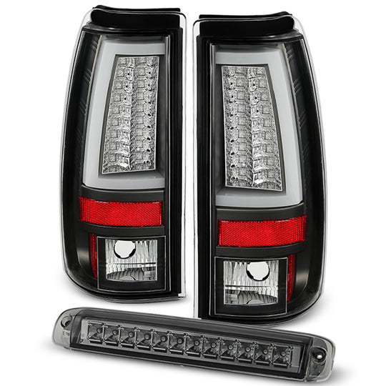 AKKON - For 99-02 Chevy Silverado 1500 2500 HD 99-06 GMC Sierra Black LED Tube Tail Lights + Smoked LED 3Rd Brake Lamp Combo