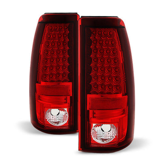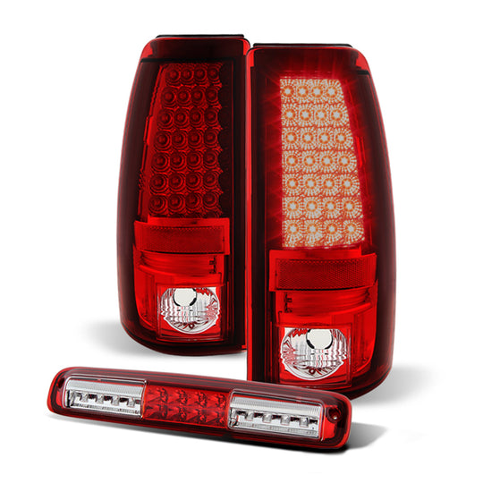 AKKON - For 99-02 Chevy Silverado | 1999-2006 GMC Sierra Red Clear LED Tail Lights + LED 3Rd Brake Lamps