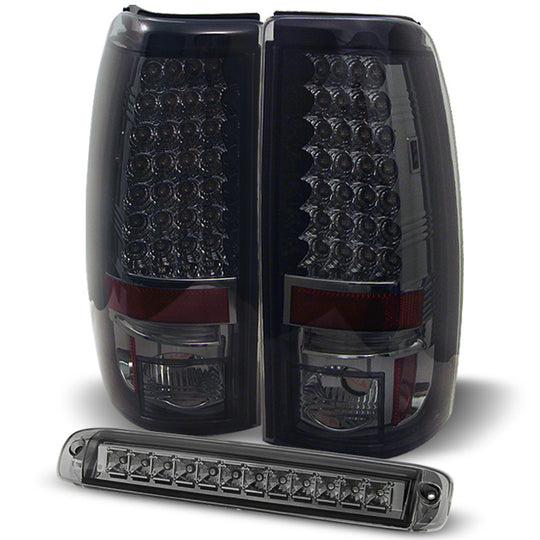 AKKON - For 99-02 Chevy Silverado | 1999-2006 GMC Sierra Smoked LED Tail Lights + Smoked LED 3Rd Brake Lamps