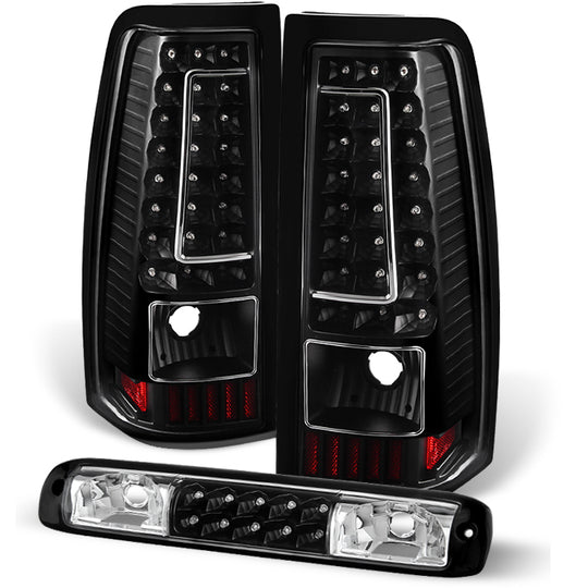 AKKON - For 99-02 Chevy Silverado Sierra 1500/2500/3500 LED C-Style Black Tail Lights Replacement + Black LED 3rd Brake Lamp