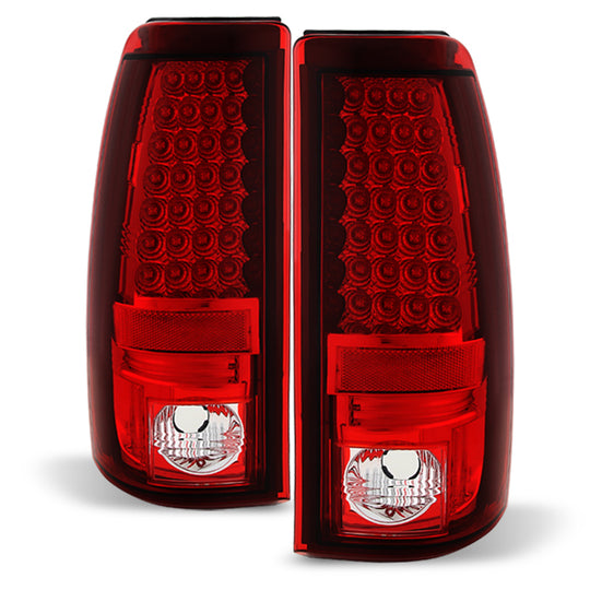 AKKON - For 99-02 Silverado 99-03 Sierra Pickup Truck V2 LED Tube Red Clear Tail Lights Brake Lamps Left+Right Pair