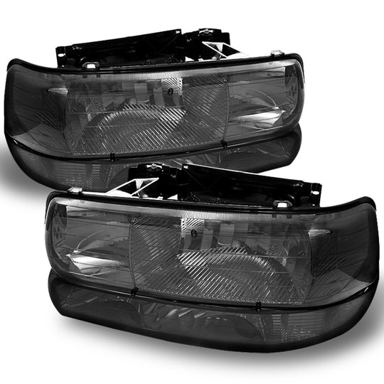 AKKON - For 99-02 Sivlerado 00-06 Suburban Tahoe Smoked Headlights Lamps + Bumper Signal Lamps 4 Pieces Combo Set