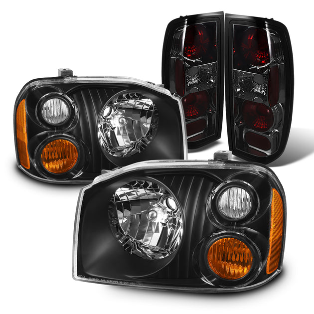 AKKON - FITS 2001-2004 Nissan Frontier Right & Left OE Style Black Headlights + Taillights Smoked Lens Housing Combo