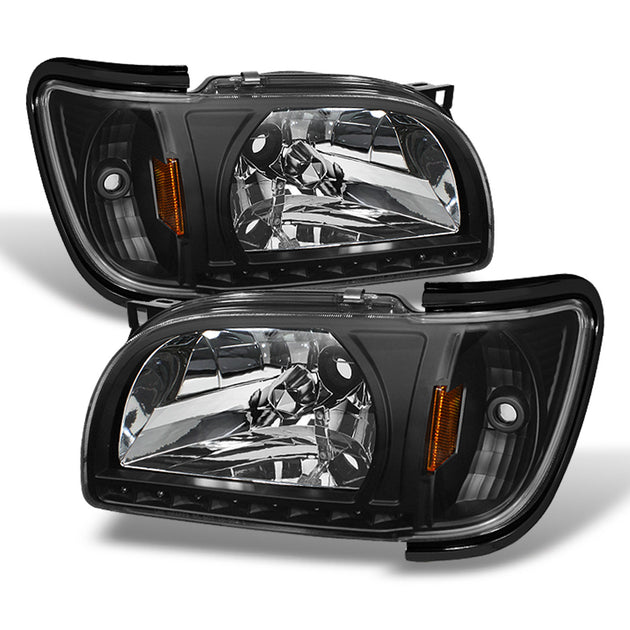 AKKON - Fits 2001 2002 2003 2004 Toyota Tacoma Pickup Truck DRL Clear Headlights w/ Black Trim Corner Signal Lamps Set