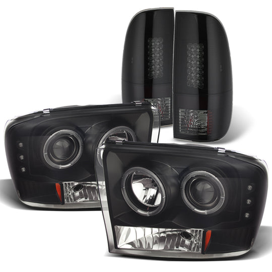 AKKON - For 99-04 Ford F-Series SuperDuty Black Smoke Dual Halo Projector Headlights Replacement Pair + Tail Lamp