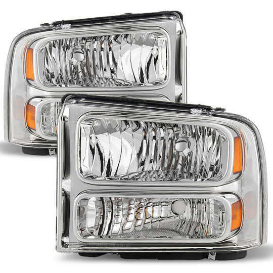AKKON - For 99-04 F-Series Superduty 00-04 Excursion Chrome Clear Headlights Front Lamps Replacement Pair