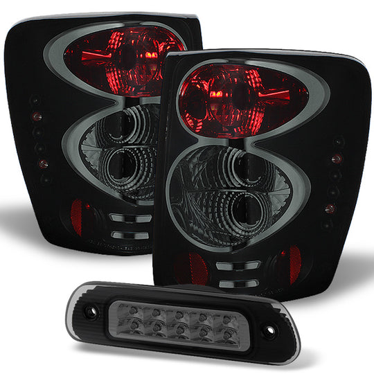 AKKON - For 99-04 Jeep Grand Cherokee WJ Black Smoked Tail lights + Smoked LED 3rd Brake light Set