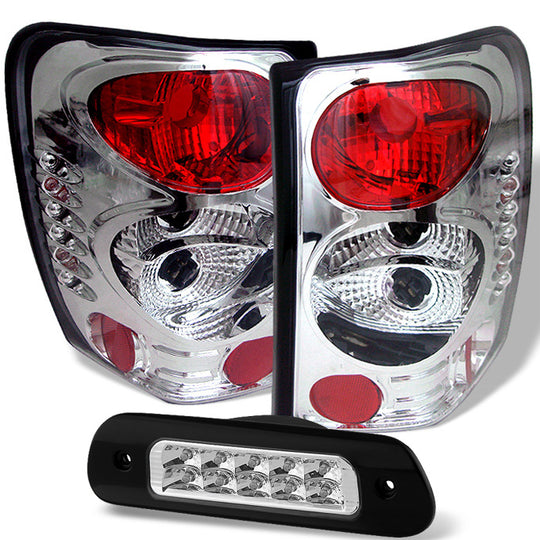 AKKON - For 99-04 Jeep Grand Cherokee WJ Chrome Housing Tail lights + Chrome Clear LED 3rd Brake light Set