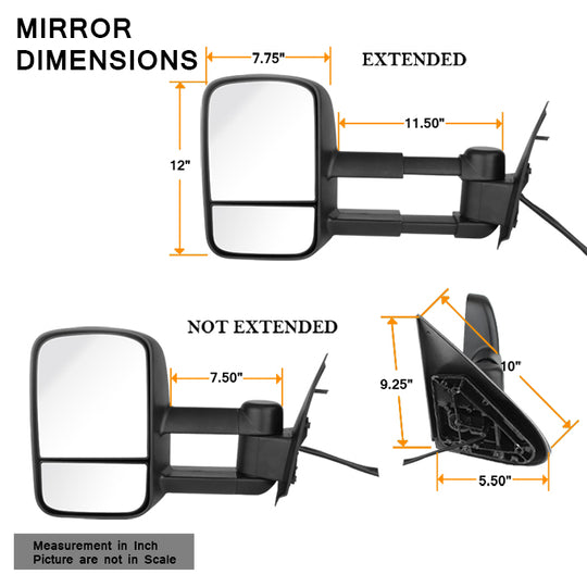 Regular price $75.99This is a Pair of Heavy Duty Towing Power Side Mirror Feature in Black Finished And It Fits 03-07 Chevy Silverado 1500/2500/3500 (For 07 Model Will Only FITS Older Classic Model)03-07 GMC Sierra 1500/2500/3500 (For 07... -