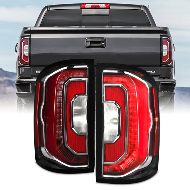 AKKON - Fits 20016-2018 GMC Sierra 1500 LED Running Turn Signal Chrome Tail Lights Pair Driver+Passenger w/Reverse Bulb