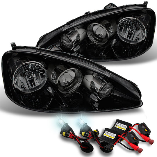 AKKON - For Acura RSX Integra DC5 Black Bezel Headlights Front Lamps Replacement +Slim Ballast 6K White HID