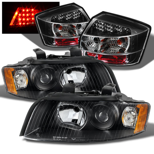 AKKON - For Audi 02-05 A4 04-05 S4 Sedab Black Bezel Projector Headlight+ Black LED Tail Lights Left+Right Lamps Combo