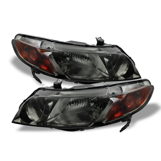 AKKON - For Amber Smoke 06-11 Honda Civic 4DR Sedan Headlights Front Lamps Replacement Pair Left + Right