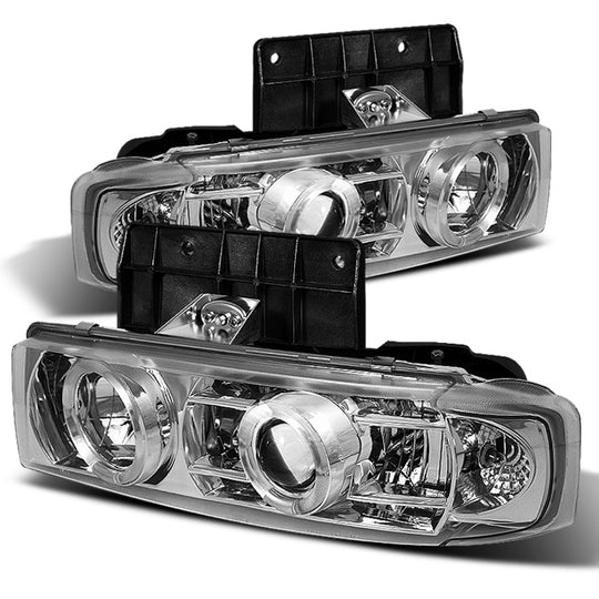 AKKON - For Astro Safari Van Sedan Chrome Dual Halo Rings Design Halogen Type Projector Headlights Lamps Pair
