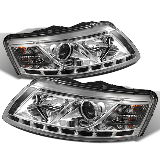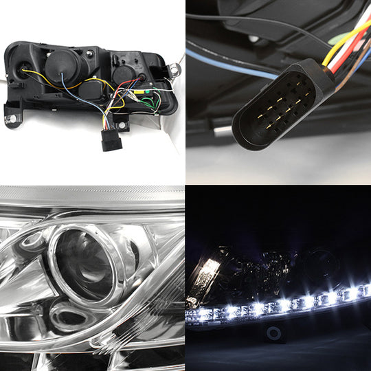 AKKON - For Audi A6 C6 Sport Sedan Chrome Clear DRL Daytime LED Strip Projector Headlights Lamps Left + Right