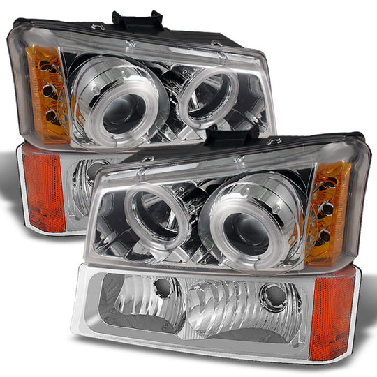 AKKON - For Avalanche Silverado 1500 2500 3500 HD Chrome Dual CCFL Halo Projector LED Headlights+ Bumper Lamps