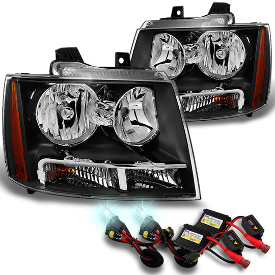 Regular price $141.99This is a 100% brand new pair of Headlights Replacement Assemblies with HID Conversion Kit in Midnight Black Housing With Crystal Clear Lens Compatible With: 07-13 Chevy Avalanche 1500 All Models 07-14 Chevy Suburban 1500 All... -