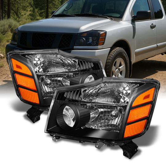 AKKON - For Black 04-15 Titan Pickup Truck 05-07 Armada Headlights Front Lamps Direct Replacement Left + Right