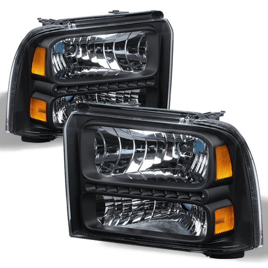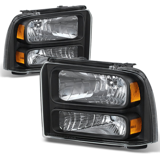 AKKON - For Black 05-07 Ford F-Series Superduty 05 Excursion Headlight Front Lamps Direct Replacement Pair