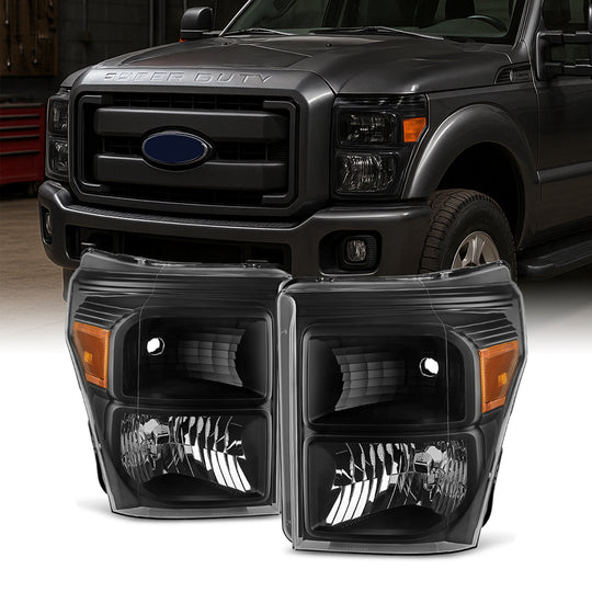 AKKON - For Black 11-16 Ford F250/350/450/550 Superduty Pickup Truck Headlights Lamps Direct Replacement Pair