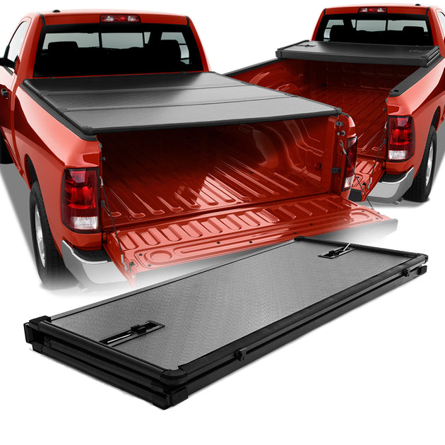 AKKON - Fits 2002-2008 Dodge Ram 1500 03-09 Ram 2500/3500 78 Inches 6.5 Feet Fleetside [Hard Tri-Fold Style] Black Tonneau Cover