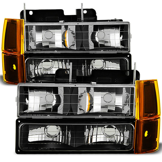 Regular price $78.99This is a 100% brand new pair of Headlights Replacement Assemblies in Midnight Black Housing With Crystal Clear Lens Compatible With: 1994-1999 GMC Full Size Pickup Truck Model Only 1994-1999 GMC Suburban All Model 1994-1998 GMC... -