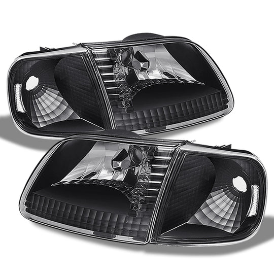 AKKON - For Black Bezel 97-03 F150 97-99 F250 LD Headlights Replacement + Corner Signal Light Lamps 4pcs Set