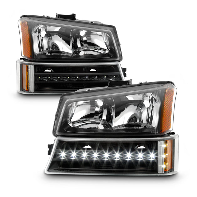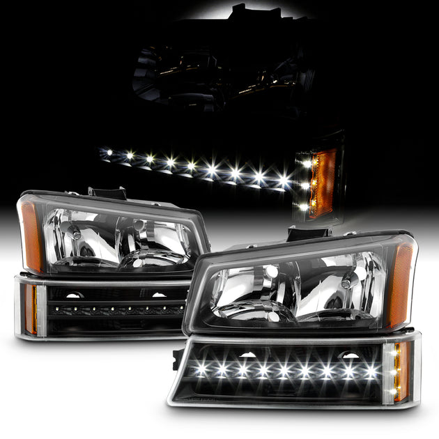 AKKON - Fits 2003-2006 Avalanche 1500/2500 Silverado 1500HD/2500HD/3500 2007 Classic Black Headlights + LED Bumper Lights Pair
