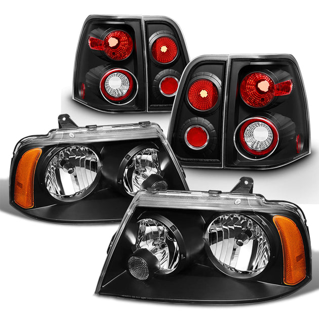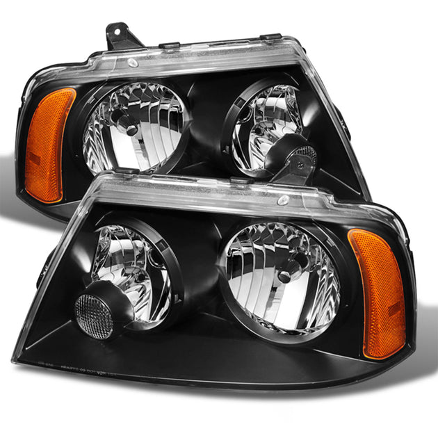 AKKON - Fits 2003 2004 2005 2006 Lincoln Navigator Halogen Type Black Headlights + Blk Tail Light Brake Lamp Pair Left+Right