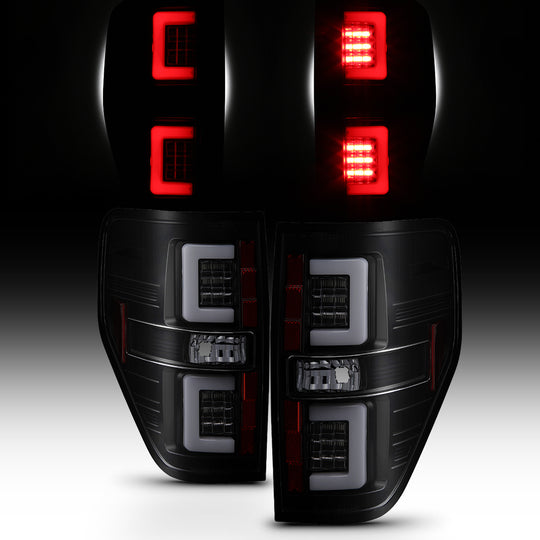 AKKON - For Black Smoked 09-14 Ford F-150 F150 Pickup Truck LED Tube Tail Lamps Brake Lights Left+Right Pair