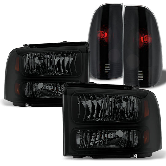 AKKON - For Black Smoked Fit 2005-2007 Ford F250 F350 F450 Super Duty Headlights + Tail Lights Pair Lamps