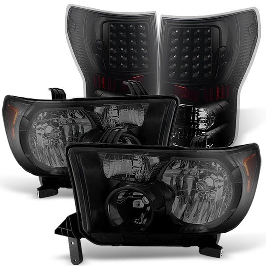 AKKON - For Black Smoked For 07-13 Tundra Pickup Truck Headlights + LED Tail Brake Lamp