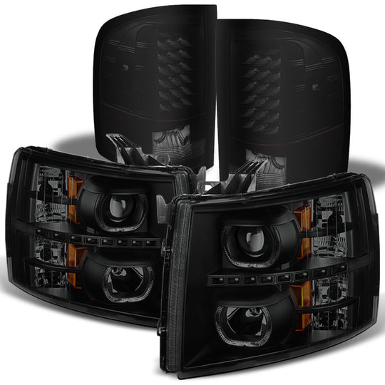 AKKON - For Black Smoked For 07-13 Silverado 1500 2500 3500 HD LED Halo Projector Headlights+ LED Tail Light