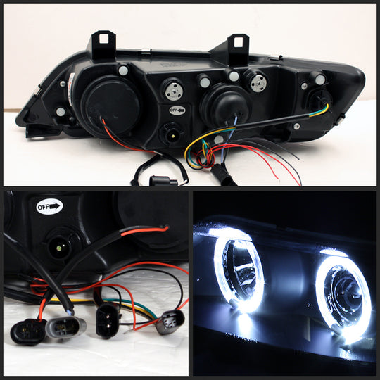 AKKON - For BMW E37 Z3 Coupe Halogen Type Black Bezel Dual Halo Ring Projector Headlights Lamps Replacement Set