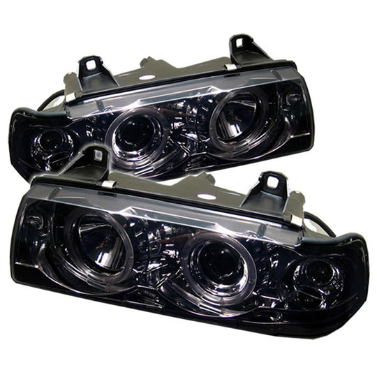 AKKON - For BMW E36 3 Series 4 Doors Sedan Smoked Smoke Dual Halo Ring Projector Headlights Lamps Left + Right