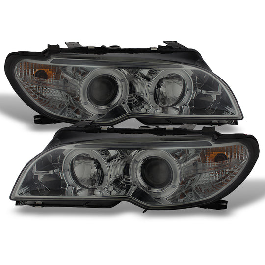 AKKON - For BMW E46 3-Series 2 Doors Coupe Smoke Halo Ring LED Projector Replacement Headlights LH/RH Lamps