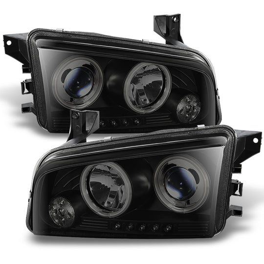AKKON - For Charger Black Smoke CCFL Halo Ring DRL LED Projector Replacement Headlights Replacement Left + Right