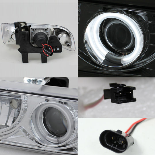 AKKON - For Chevy 1998-04 S10 / 1998-05 Blazer CCFL Angel Eyes LED Projector Headlights Chrome Housing Clear Lens Full Set