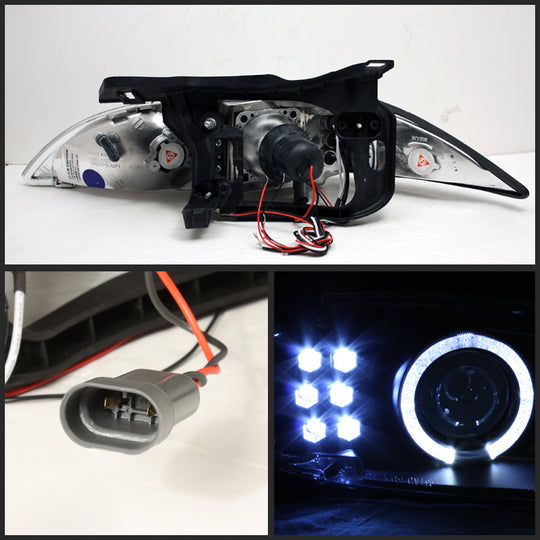 AKKON - For Chevy Cavalier Black Bezel Dual CCFL Halo Ring Design Projector Headlights Front Lamps Left + Right