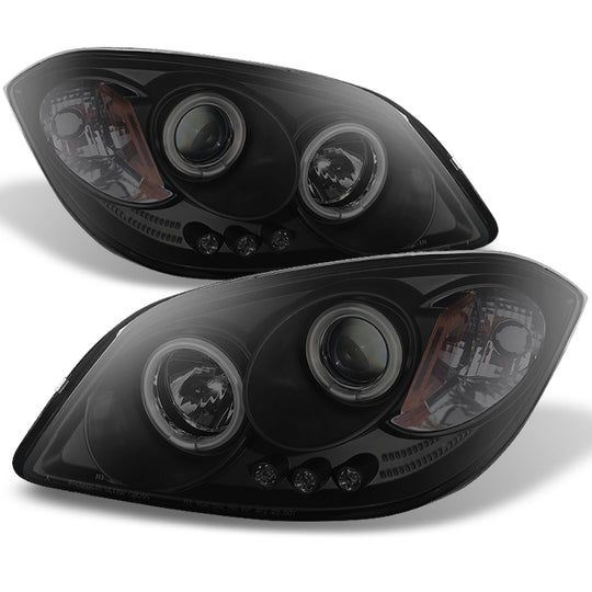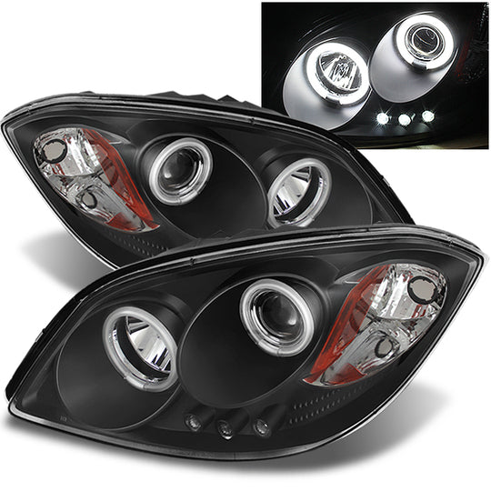 AKKON - For Chevy Cobalt G5 Pursuit Black Bezel CCFL Halo Ring Projector Headlights Front Lamps Replacement Pair
