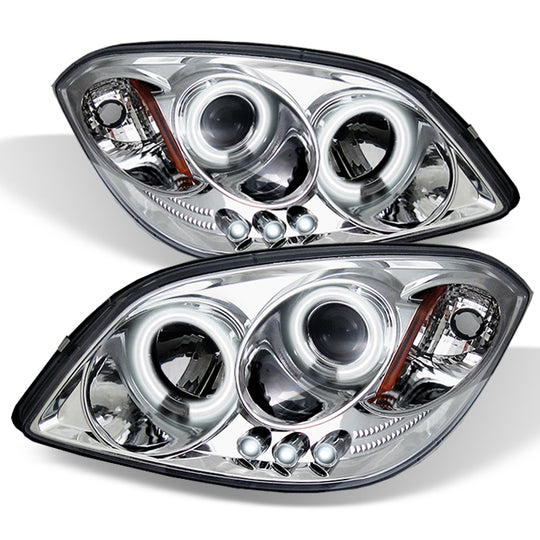 AKKON - For Chevy Cobalt G5 Pursuit Chrome Clear CCFL Halo Ring Projector Headlights Front Lamps Replacement Set