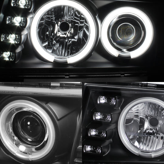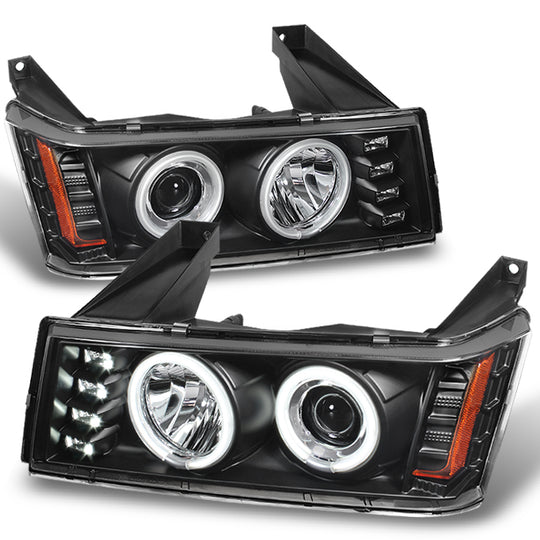 AKKON - For Chevy Colorado GMC Canyon Pickup Black Bezel Dual CCFL Halo Ring Design Projector Headlights Lamps