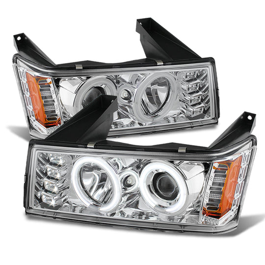 AKKON - For Chevy Colorado GMC Canyon Pickup Chrome Clear Dual CCFL Halo Ring Design Projector Headlights Lamps