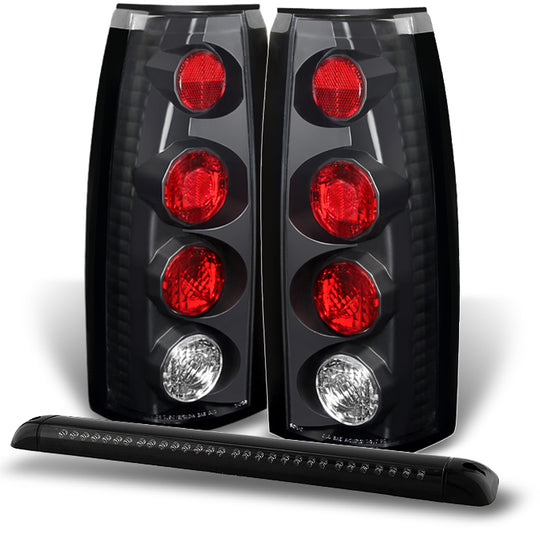 AKKON - For Chevy GMC Suburban | Blazer | Tahoe | Yukon | Escalade Black Bezel Tail Light + LED 3rd Brake Lamp